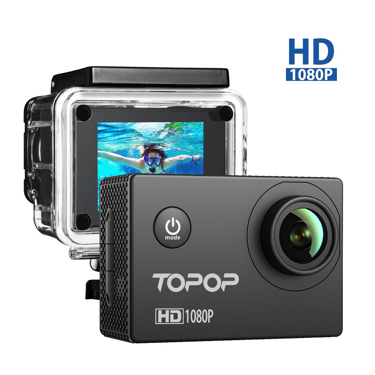 ❀Full HD 1080P.❀ Topop Full HD 1080P Action Camera con risoluzione 1080p 30fps video e foto da 12MP risoluzione. Supporta l'immagine di anteprima e Riproduci video sullo schermo della videocamera. Supporto veloce avanti e veloce Rewind video.